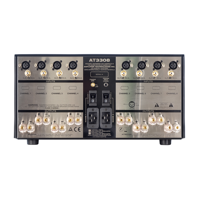 Amplifier Technologies have developed a powerful multi-channel amplifier capable of astounding performance for music and cinema experiences. The AT3300 Pure Balance Series amplifiers deliver 330 watts per channel at 8 ohms and are available from 2 to 8 channel models. Featuring toroidal transformers and differential output stages, the AT3300 Series utilize ATI’s hybrid cooling system to keep the amplifier safely operating under the most demanding conditions.