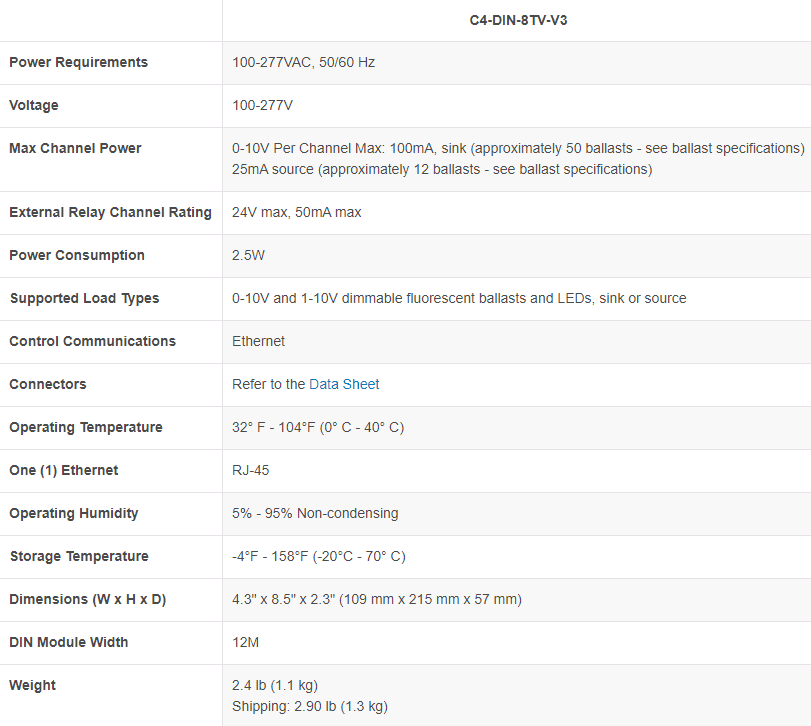 The version 3 update to the Control4 DIN-Rail 8-Channel 0-10V Dimmer module includes a hardware upgrade that enables support for Transport Layer Security (TLS 1.2) to secure communication on the IP network between lighting modules and the Control4 controller. This update brings the module up to date with advancing communication security standards and provides the same level of security currently available in the other Control4 Centralized Lighting modules (C4-DIN-8APD-E, C4-DIN-8FPD-E, C4-DIN-8RELSW, C4-DIN-BEG-V2). The new V3 module requires Control4 OS 3.4.2 or later.