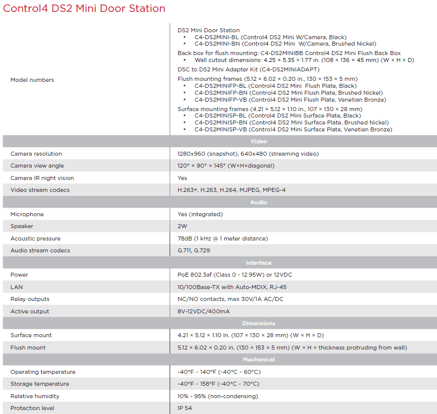 The Control4 DS2 Mini Door Station delivers an amazing audio and HD video intercom experience, enabling customers to monitor and communicate with the front door or their security gate. Combined with Control4 touch screens, customers enjoy greater convenience and peace of mind throughout the home.