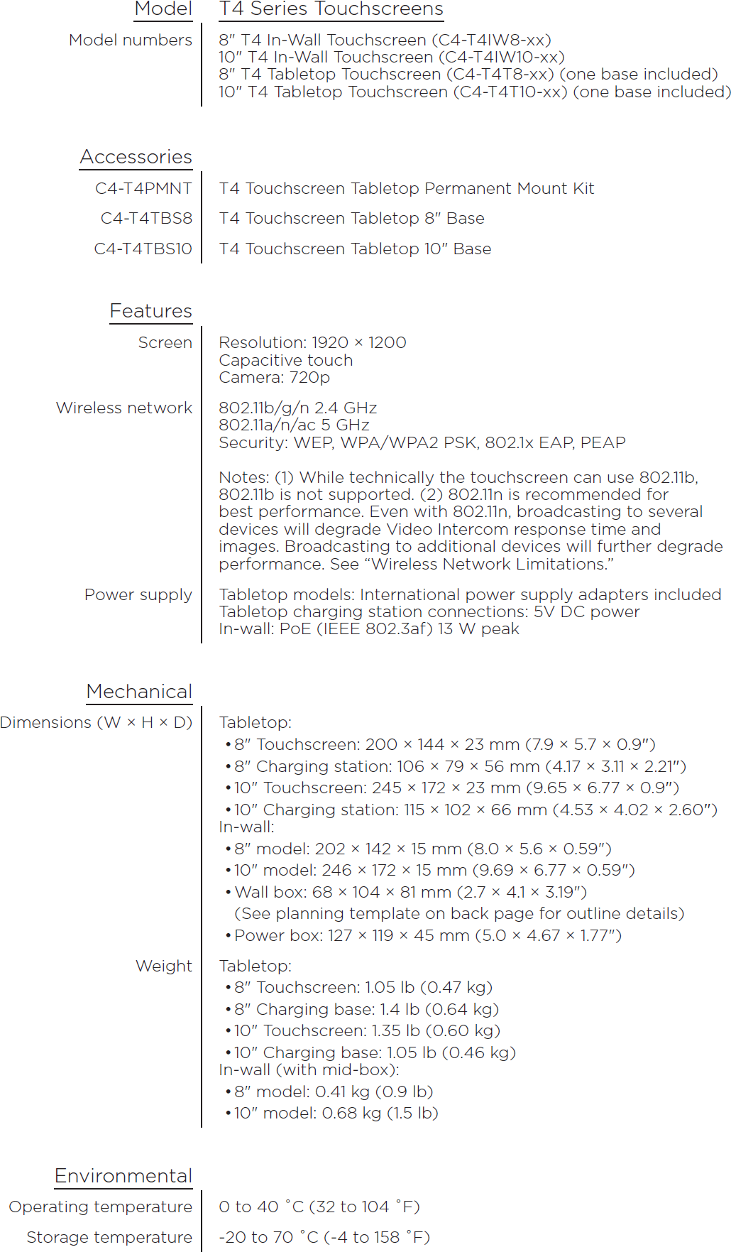 Tool-less installs (no ribbon cable required) make touchscreen installation and removal fast, and mounting is easy and secure thanks to powerful magnets and a tamper-resistant screw. Plus, T4 is available in portable and in-wall models and uses the same backbox as all Control4 touchscreens built since 2010 for a quick retrofit solution.