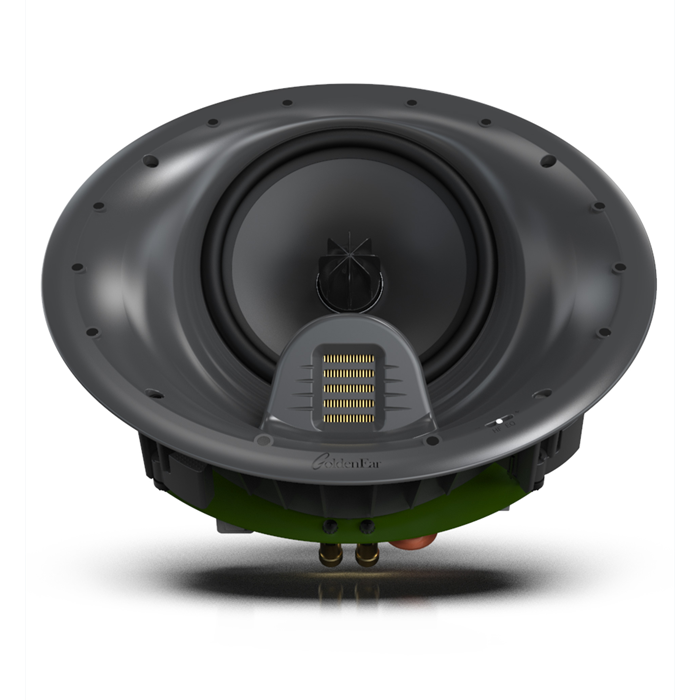 The Invisa Home Theater Reference 7000 is designed for use as a ceiling-mounted main front stage left, right, or center speaker in high-quality home theater or music systems, as well as for use as a side or rear surround speaker. In many installations it is also perfect as a height channel speaker. It has a flat, round, magnetically attached micro-perf grille that covers the mounting flange for an attractive, nearly “invisible” look. The drivers are mounted at precisely calculated angles so that they face the normal listening position for exceptional imaging, superior frequency response, remarkable clarity and precise focus. The driver complement combines the same superb 7″ high-definition cast-basket driver used in the acclaimed Aon 3, with one of GoldenEar’s signature technology HVFR™ tweeters. A complex crossover network, with a high-frequency equalization switch, assures perfect blending. In order to achieve open, boxless, three-dimensional imaging that appears to come from across the front wall rather than the ceiling, great care has been taken to minimize deleterious diffraction effects as well as to optimize wave-launch into the room. This is achieved by utilizing and combining our FocusField™ Technology with a unique Non-Periodic Waveform (NPW) Diffraction Control and Wave-Launch construction.