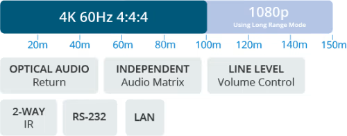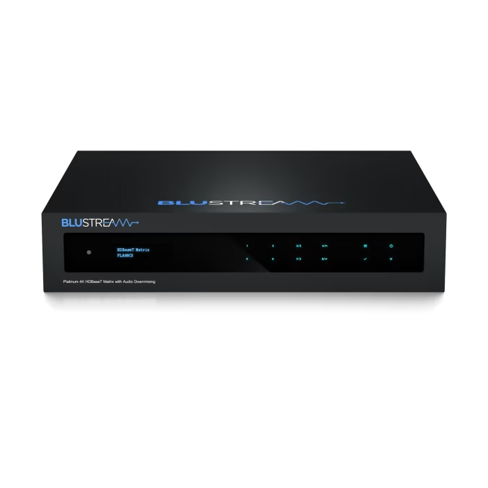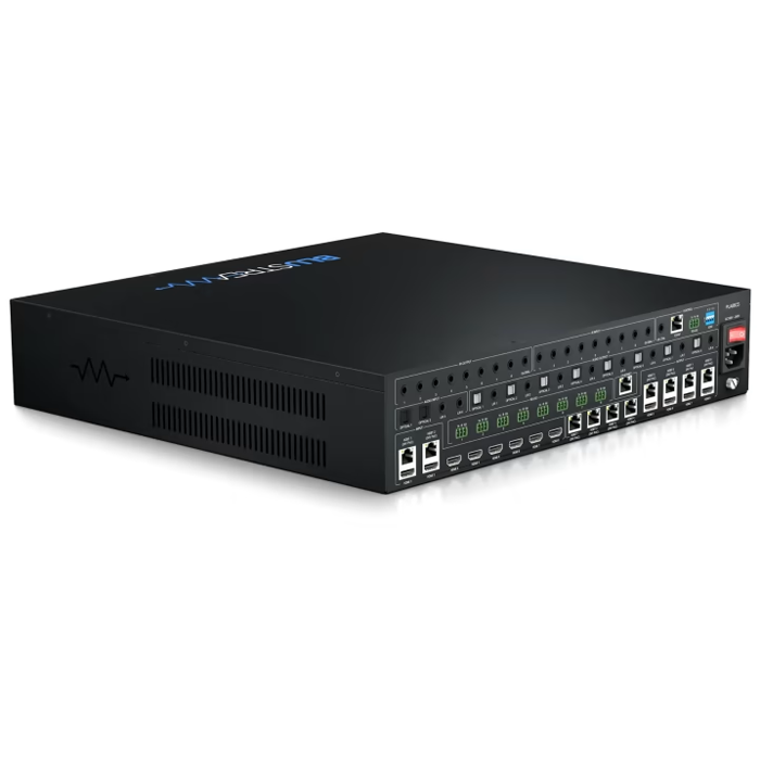 8×8 4K HDMI 2.0 HDBaseT™ CSC AV Matrix – Supports up to 4K60Hz 4:4:4 to 100m (150m 1080p), simultaneous HDBaseT™ / HDMI Outputs, independent video scaling on outputs, Dolby Audio & DTS Audio downmixing on HDBaseT™ / HDMI and audio outputs, independent Audio Matrix, ARC enabled, Line Level Volume Control, LAN serving, Bi-directional IR & RS-232, PoC, HDCP2.2 & Web GUI