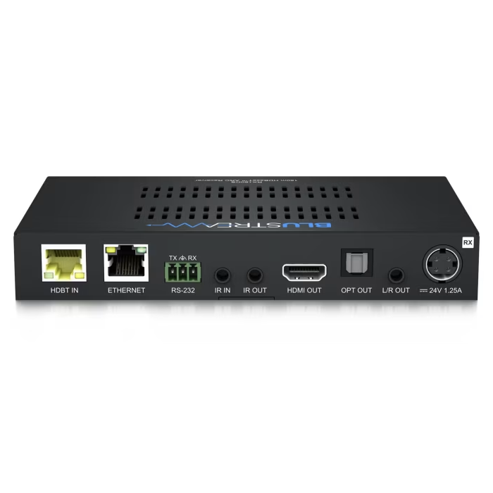 The RX150CS Receiver features ARC support and Ethernet pass through when used with compatible Blustream hardware and simultaneous analogue stereo and Optical Toslink audio breakout.