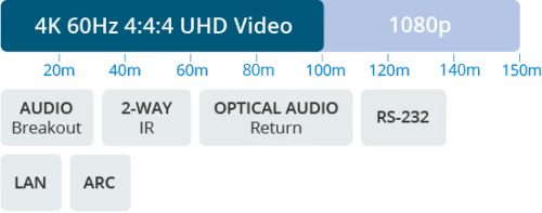 The product extends HDMI, Bi-directional IR & RS-232 and is powered by the matrix up to lengths of 150m (4K 100m).
